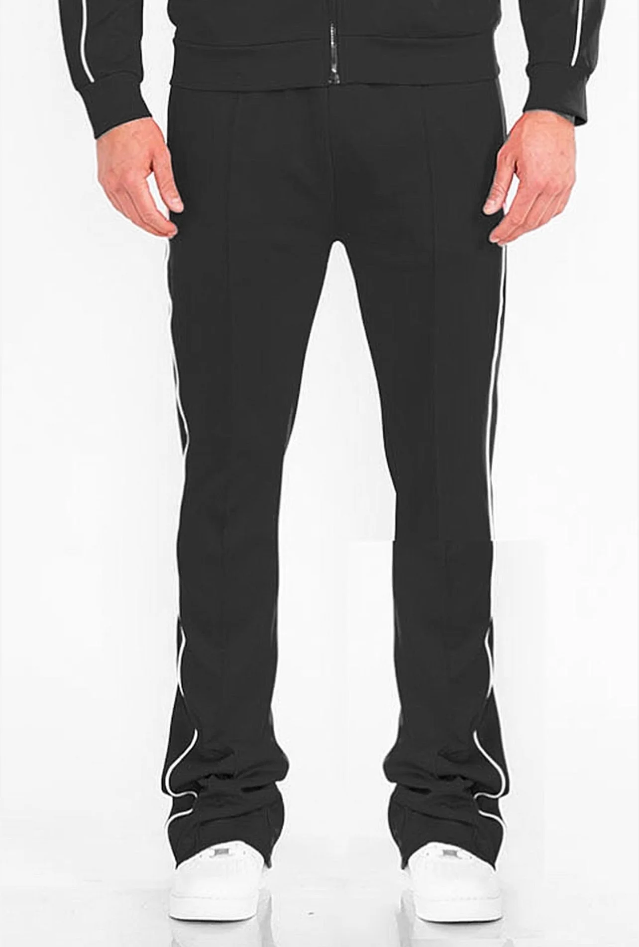 Image 1 of 4 Image 2 of 4 Image 3 of 4 Image 4 of 4 Flare stacked bottoms track pants $69.99 Solid with white side piping Two zippered pockets Single back pocket 95% polyester 5% spandex Size: Small Medium Large XL XXL Quantity: Add To Cart Added! Solid with white side piping Two zippered pockets Single back pocket 95% polyester 5% spandex Reviews Reviewer Name Review Date Star Rating Description Posted on Etsy Product Show More